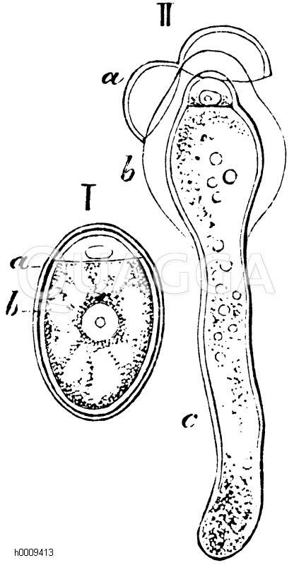 ![Zypresse. I. Pollenkorn mit seinen beiden Zellen, a) und b) die beiden Häute des Pollenkorns. II. Pollenkorn, welches den Pollenschlauch (c) gebildet hat [Digital]](https://www.quagga-illustrations.de/wp-content/uploads/2014/03/h0009413.jpg)