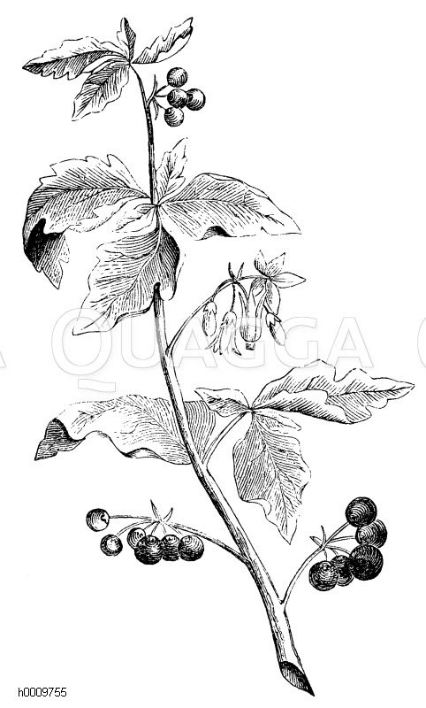 Botany; graphic; graphics; wood engraving; wood engravings; illustration; illustrations; plant; plants; Solanaceae – nightshade family; lurch line drawing; xylograph; woodcut; drawing; botanical; botanical illustration; toxic; poisonous plant; poisonous plants; historically; black and white; vintage,