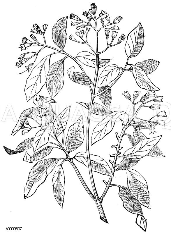 Gewürznelken: Zeichnung/Illustration/Holzstich – Syzygium aromaticum – clove tree – giroflier