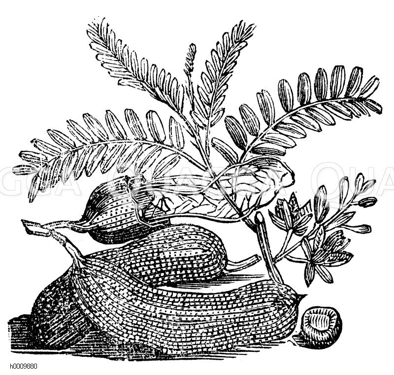 Tamarindenbaum: Zeichnung/Illustration/Holzstich – Thamarindus indicus – tamarind – tamarinier