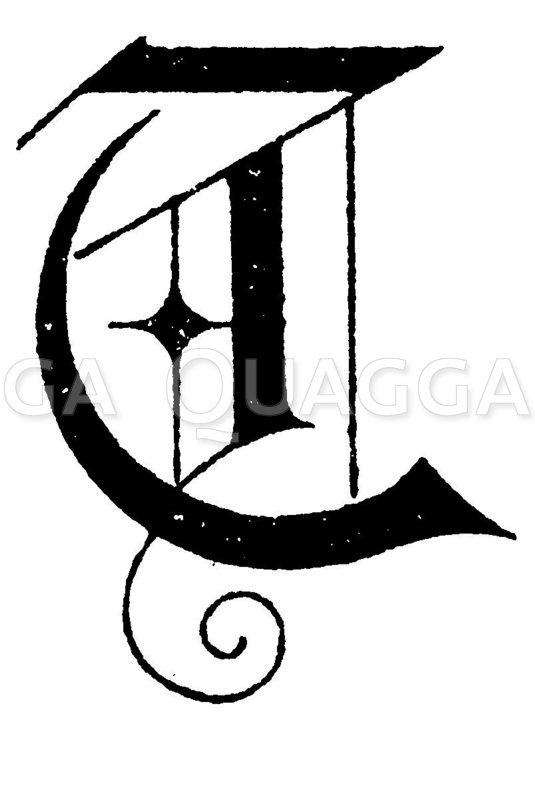 Buchstabe T, Schriftart: altgotisch: Zeichnung/Illustration/Holzstich – – –