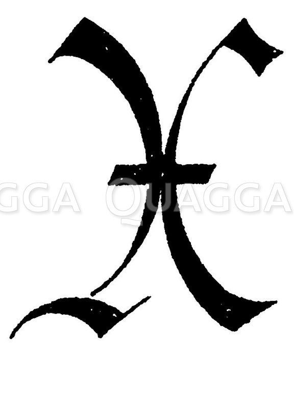 Buchstabe X, Schriftart: Kanzlei-Frakturschrift: Zeichnung/Illustration/Holzstich – – –