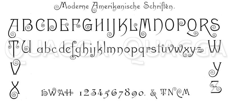 Alphabet und Ziffern: Amerikanische Schrift: Zeichnung/Illustration/Holzstich – – –