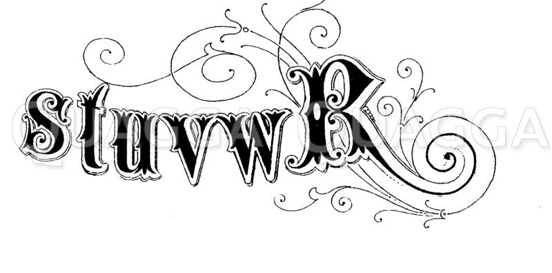 Alphabet: Jugendstil, stuvw und R: Zeichnung/Illustration/Holzstich – – –