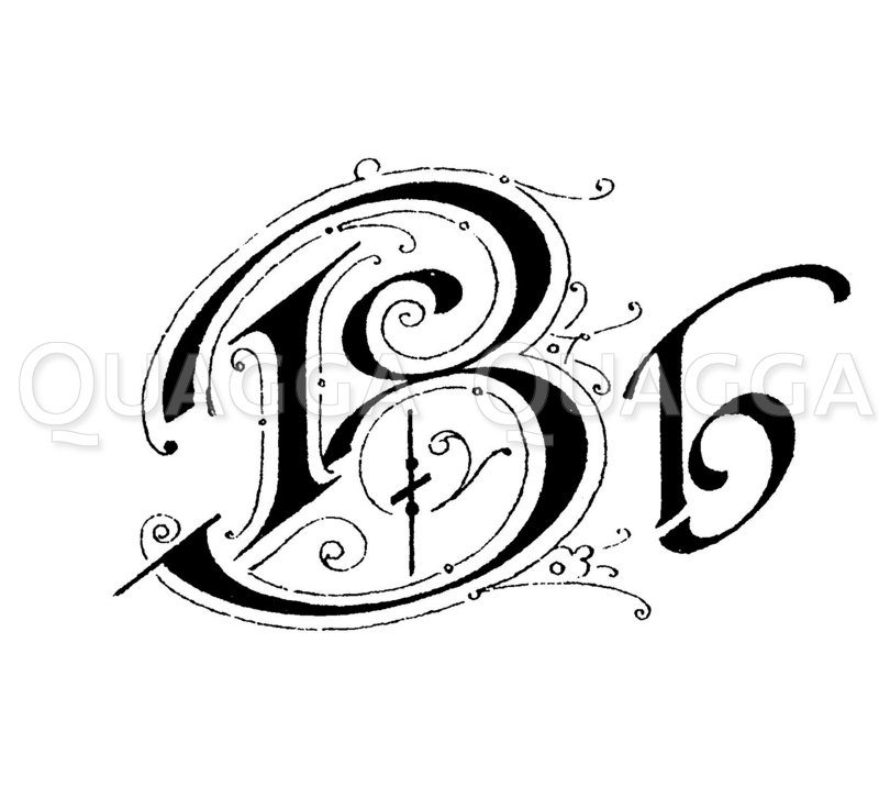 Letter B; graphic; graphics; wood engraving; wood engravings; illustration; illustrations; engraving; line drawing; xylograph; woodcut; drawing; historical; black and white; vintage,
