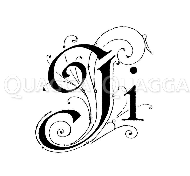 Letter I; Letter J; graphic; graphics; wood engraving; wood engravings; illustration; illustrations; Inital; initial; majuscule; lurch line drawing; xylograph; woodcut; drawing; historical; black and white; vintage,