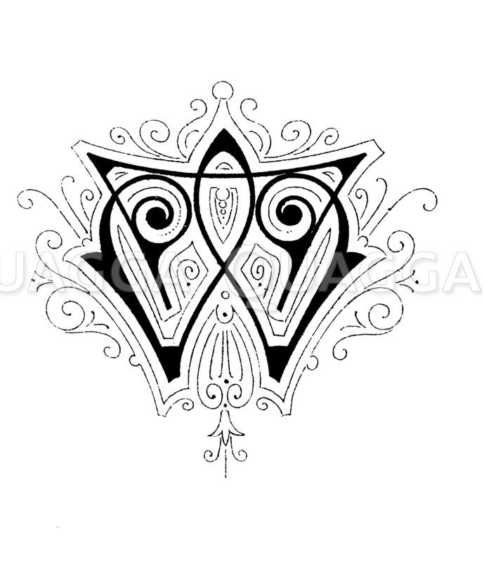 Buchstabe W, Schriftart: Jugendstil: Zeichnung/Illustration/Holzstich – – –