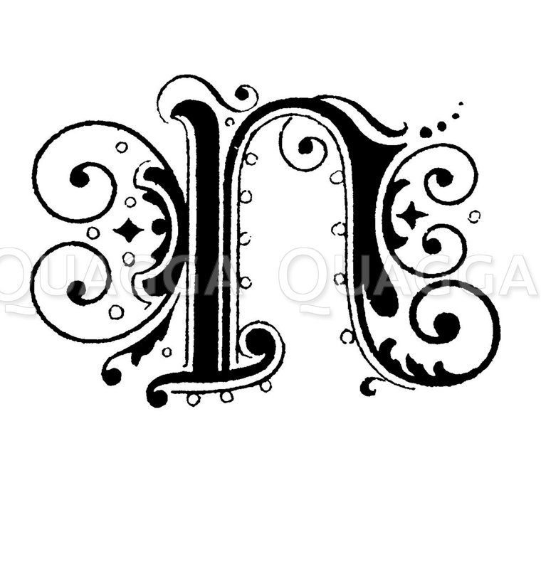 Buchstabe N, Mönchsschrift aus dem 12. Jahrhundert: Zeichnung/Illustration/Holzstich – – –