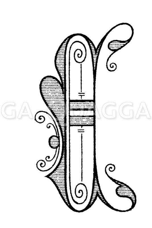 Buchstabe E, Phantasieschrift: Zeichnung/Illustration/Holzstich – – –