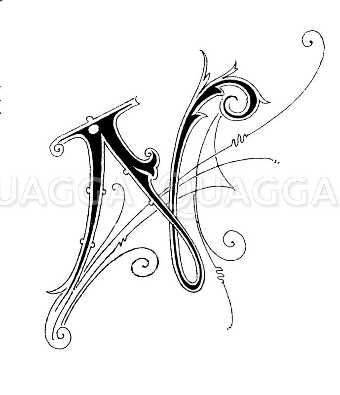 Buchstabe N, Schriftart: Jugendstil: Zeichnung/Illustration/Holzstich – – art nouveau alphabet 1, letter N –