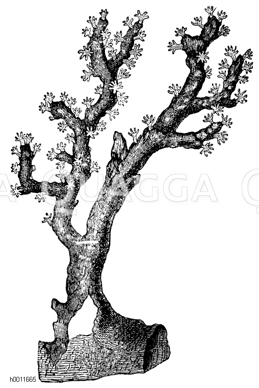 Edelkoralle mit lebenden Tieren: Zeichnung/Illustration/Holzstich – – –