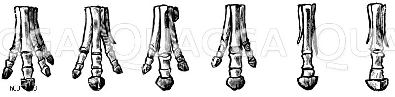 ![Die amerikanische Stammreihe des Pferdes (Vorderfüße). Nach Marsh. Von links: Pferd (Jeztzeit), Quartärperiode, Pliohippus (oberes Pliocän), Gippotherium oder Hipporion (unteres Pliocän), Miohippus oder Anchitherium (Miocän), Mesohippus (Oligocän), Orohippus oder Hyrocotherium (Eocän) [Digital]](https://www.quagga-illustrations.de/wp-content/uploads/2014/03/h0011808.jpg)