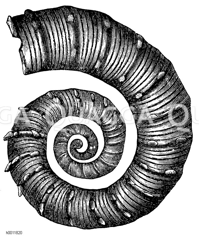 Crioceras: Zeichnung/Illustration/Holzstich – – –