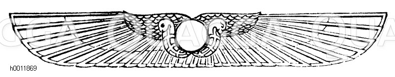 Geflügelte Sonnenscheibe: Zeichnung/Illustration/Holzstich – – Winged Sun Disc –