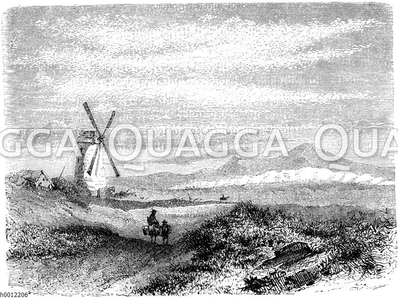 Genre; Genre painting; Mountains; Ass; Horse; Travel; to travel; Walker; hike; Wandering; width; windmill, Genre; La peinture de genre; montagnes; âne; cheval; voyage; voyage; marcheurs; randonnée pédestre; errant; largeur; moulin à vent