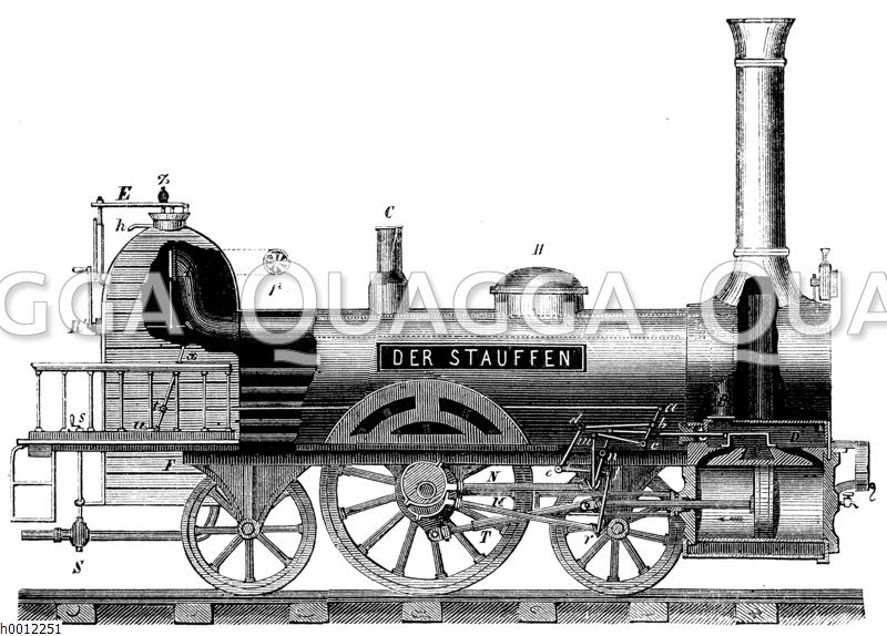 Lokomotive: Zeichnung/Illustration/Holzstich – – Locomotive ‚The Staufer‘ – Locomotive ‚Le Staufer‘