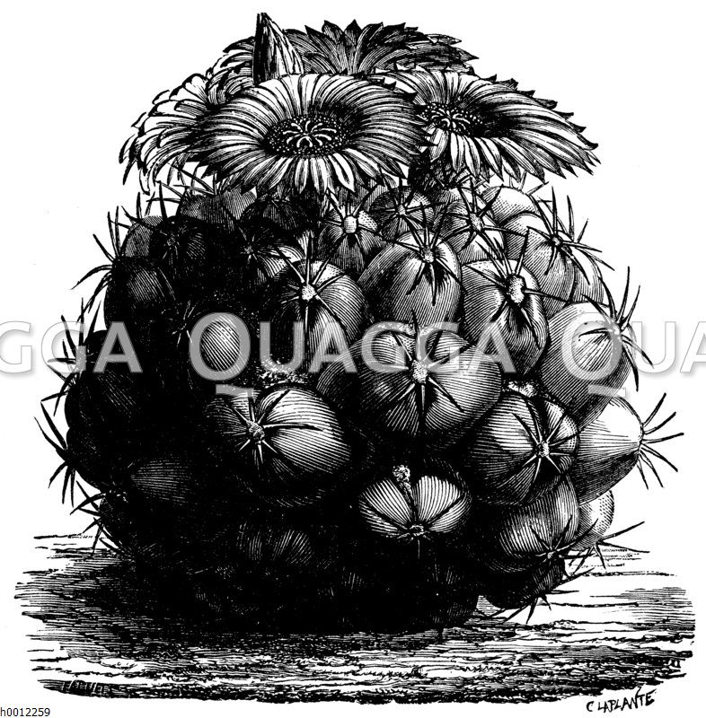 Warzenkaktus, blühend: Zeichnung/Illustration/Holzstich – Mammillaria – –