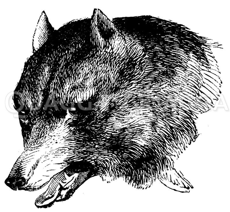 Wolf: Porträt: Zeichnung/Illustration/Holzstich – Canis lupus – Wolf
