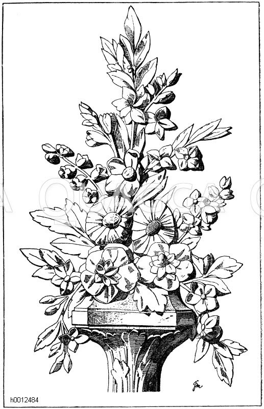 Plastischer Blumenstrauß. Holzschnitzerei im Stile Louis XVI. (F. A. M. cours d’ornement).: Zeichnung/Illustration/Holzstich – – –