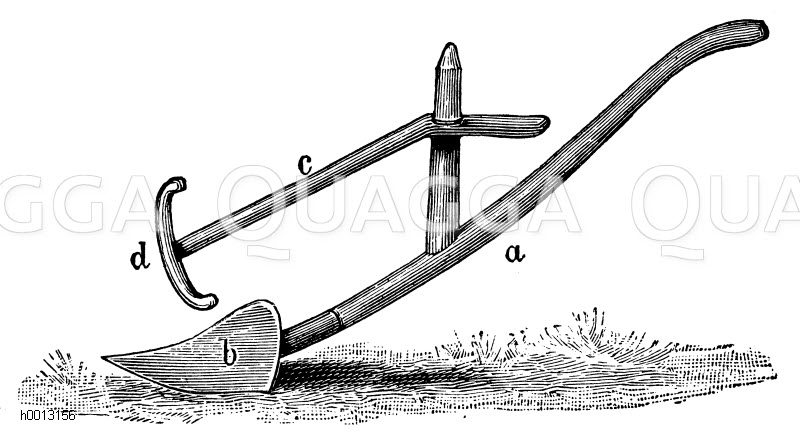 Römischer Pflug: Zeichnung/Illustration/Holzstich – – –