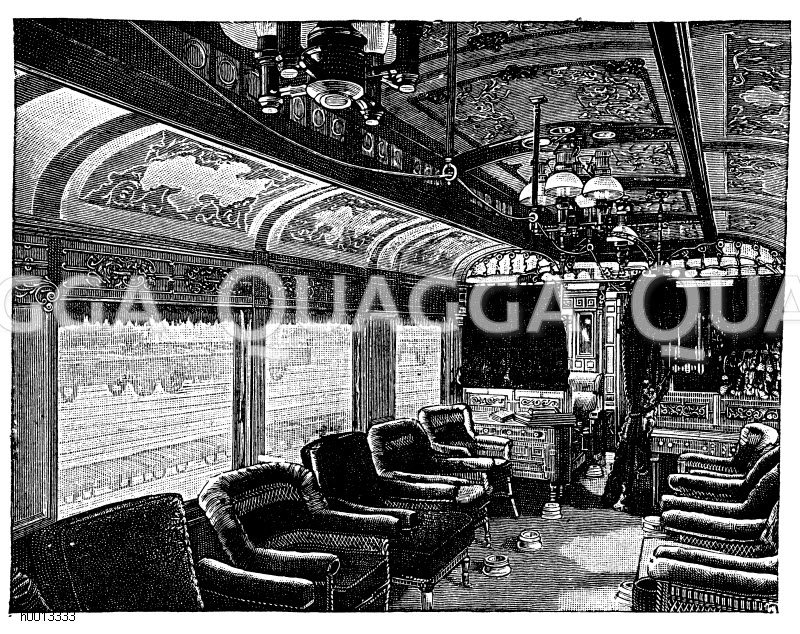 Inneres eines Salonwagens: Zeichnung/Illustration/Holzstich – – Interior of a saloon car – Interieure d’une berline