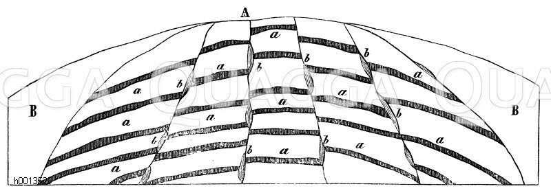 Durchschnitt des Zinnwalder Zinnstocks: Zeichnung/Illustration/Holzstich – – Section of the Zinnwalder Zinnstock – Moyenne du Zinnwalder Zinnstock