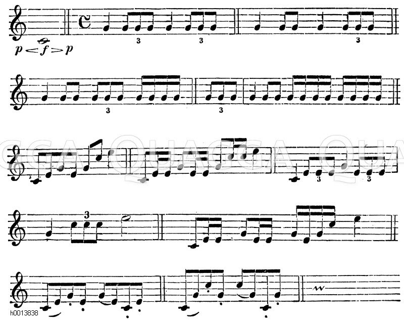 Notenbeispiele: Zeichnung/Illustration/Holzstich – – Sample of notes – échantillon