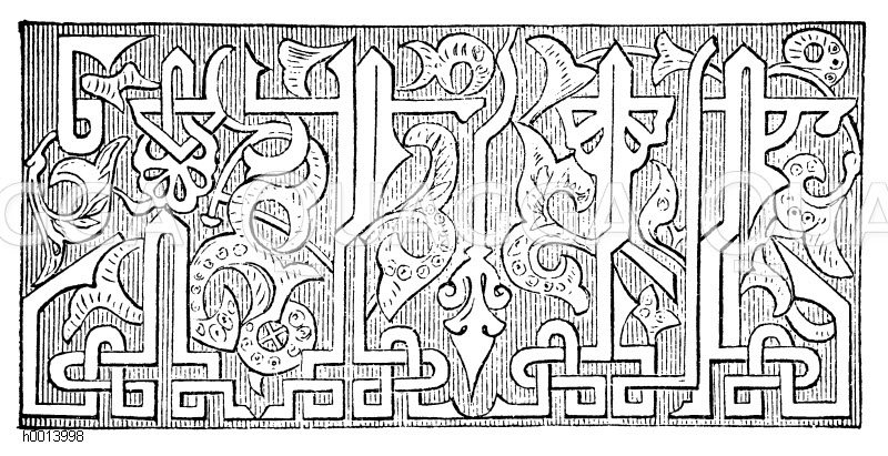 Kufische Schrift als Ornamentik: Zeichnung/Illustration/Holzstich – – –