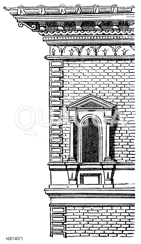 Oberes Stockwerk des Palazzo Farnese in Rom von Michelangelo: Zeichnung/Illustration/Holzstich – – –