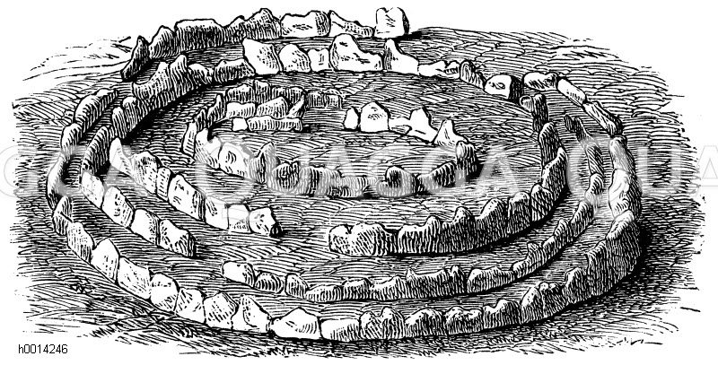 Unbedeckte Grundlage eines Tumulus bei Nikolajew (Gouvernement Cherson): Zeichnung/Illustration/Holzstich – – Uncovered basis of a tumulus near Nikolayev (Kherson government) – Base découverte d’un tumulus près de Nikolaïev (gouvernement Kherson)