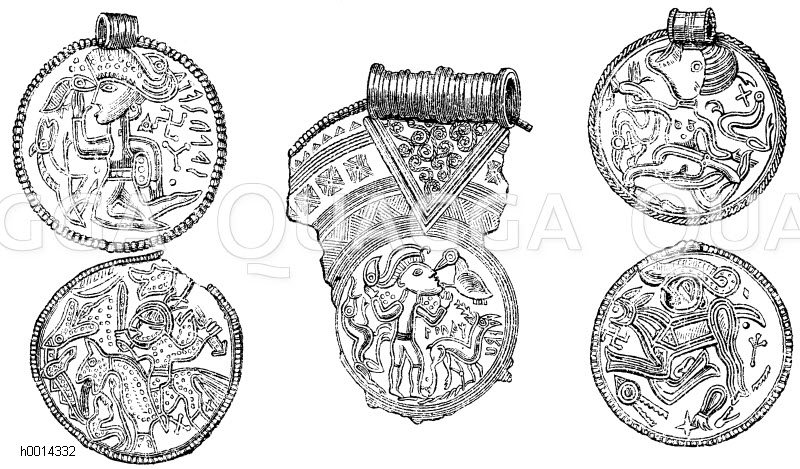 Brakteaten: Zeichnung/Illustration/Holzstich – – bracteates – bractées