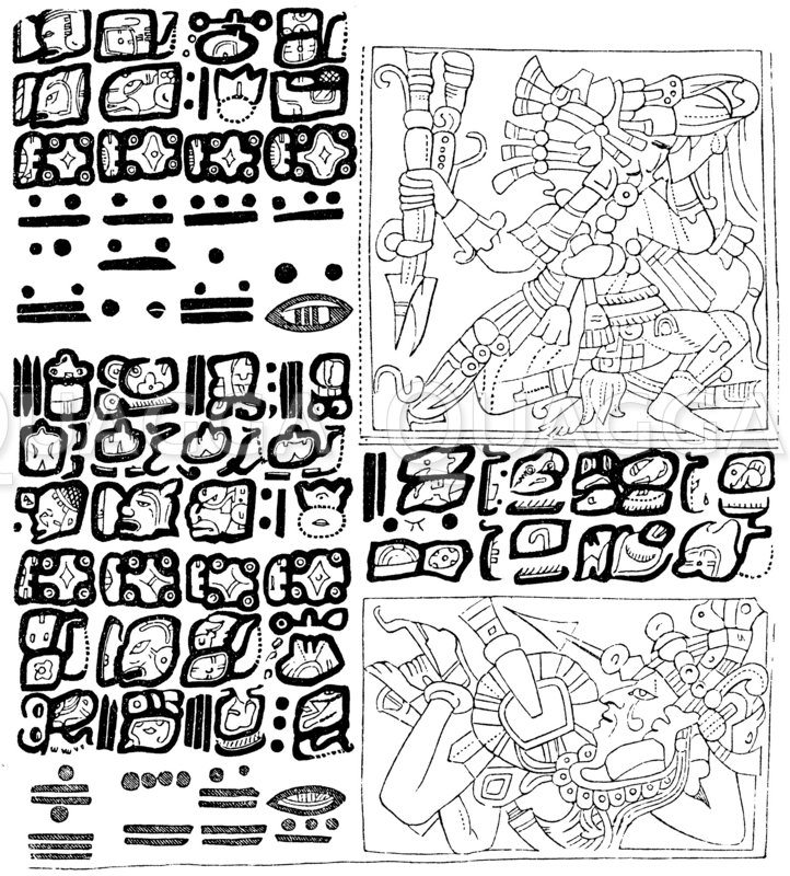 Fragment einer mexikanischen Schrift: Zeichnung/Illustration/Holzstich – – fragment of a Mexican writing –