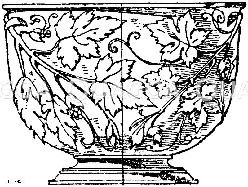 Antiker Becher in Silber getrieben. Zum Hildesheimer Silberfuncl gehörig. Museum in Berlin.: Zeichnung/Illustration/Holzstich – – –