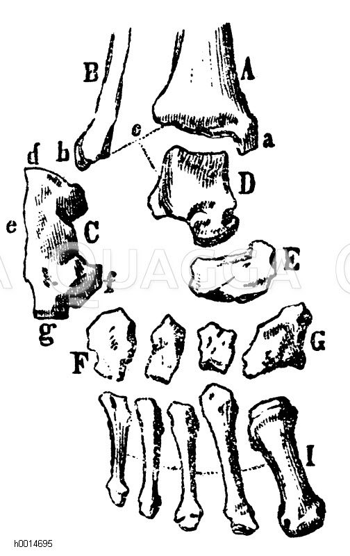 Mensch: Knochen des Fußes: Zeichnung/Illustration/Holzstich – – Human: Bones of the foot – Humain: os du pied