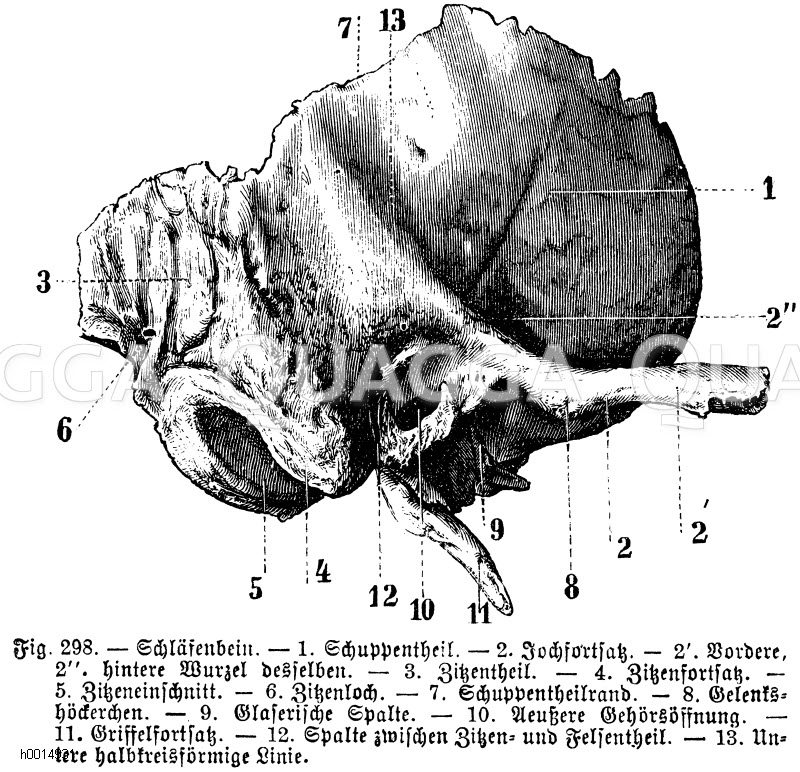 Schläfenbein: Zeichnung/Illustration/Holzstich – – –