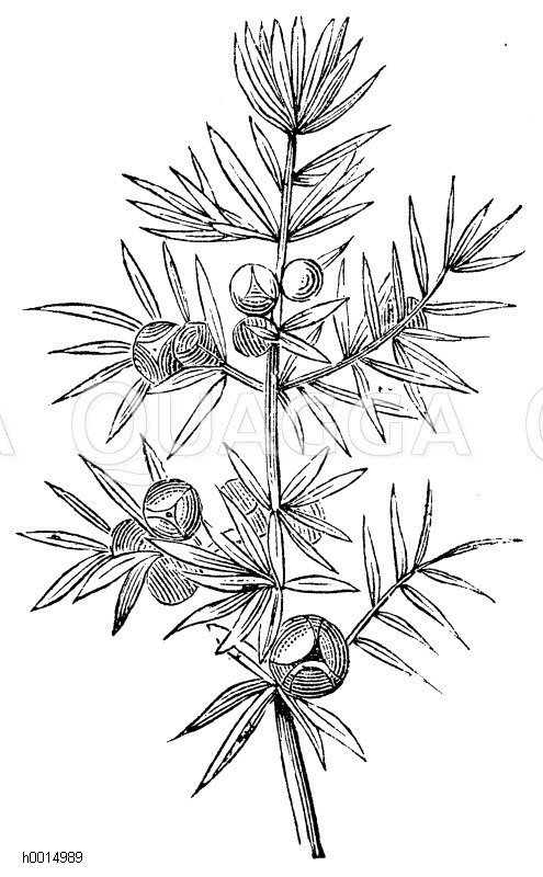 Wacholder: Zeichnung/Illustration/Holzstich – Juniperus communis – common juniper