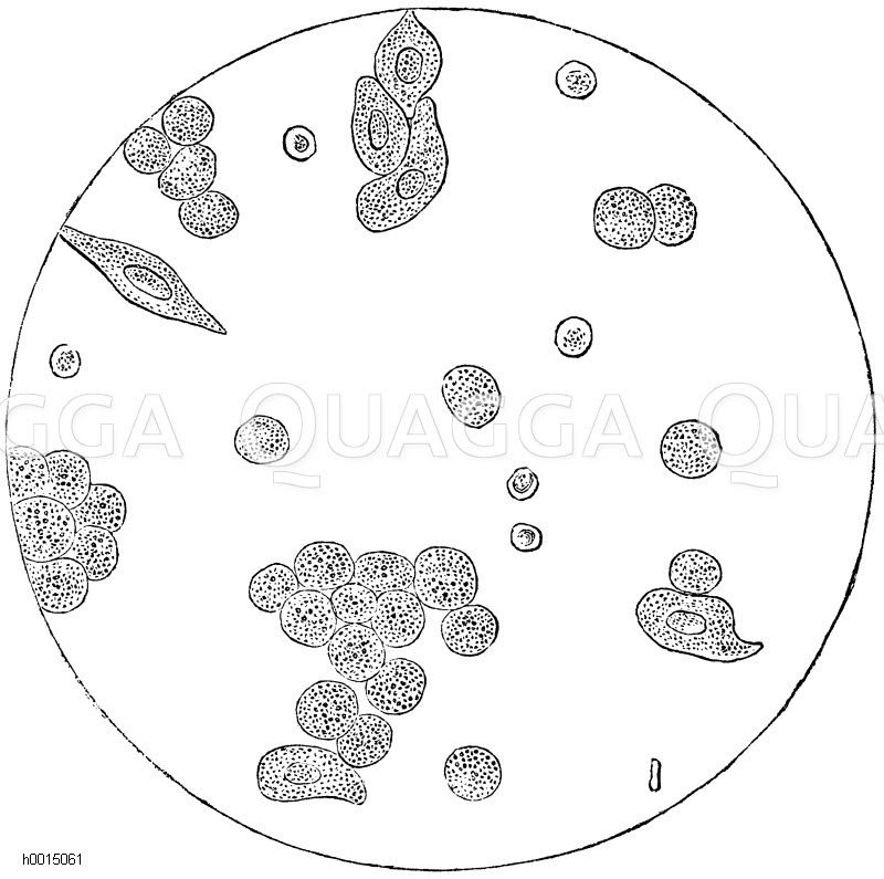 Eiterkörperchen: Zeichnung/Illustration/Holzstich – – –