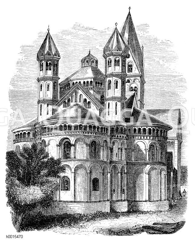 Apostelkirche in Köln, Deutschland: Zeichnung/Illustration/Holzstich – – Apostle Church in Cologne, Germany –