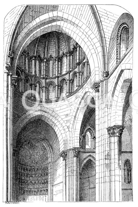 Inneres der alten Kathedrale von Salamanca: Zeichnung/Illustration/Holzstich – – Interior of the old cathedral of Salamanca – À l’intérieur de l’ancienne cathédrale de Salamanque