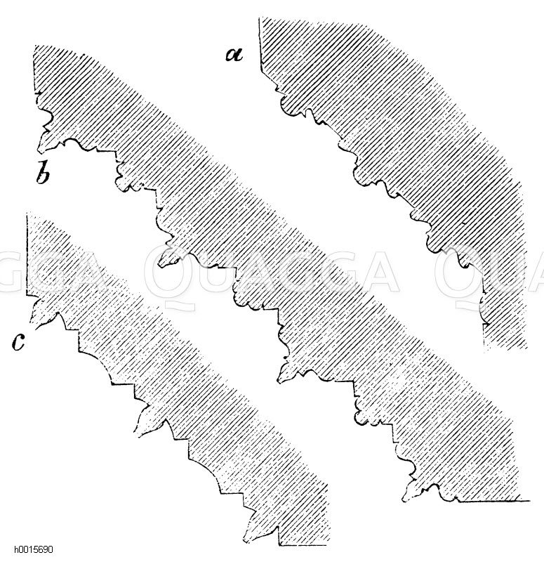 Portalprofile von Rostocker Kirchen: Zeichnung/Illustration/Holzstich – – Portal profiles of Rostock churches – Profils de portail des églises de Rostock