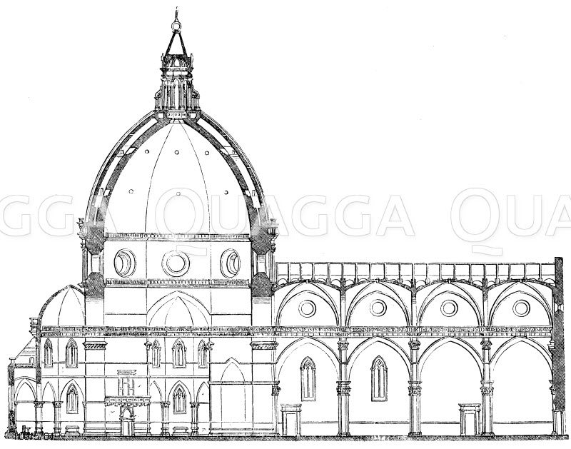 Dom zu Florenz: Durchschnitt: Zeichnung/Illustration/Holzstich – – Cathedral of Florence: section –