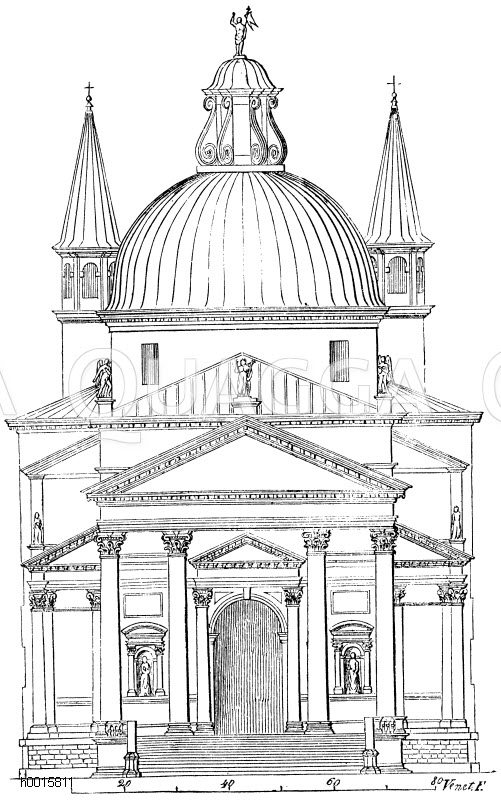 Kirche del Redentore zu Venedig: Zeichnung/Illustration/Holzstich – – Church of the Redentore at Venice – Eglise du Redentore à Venise