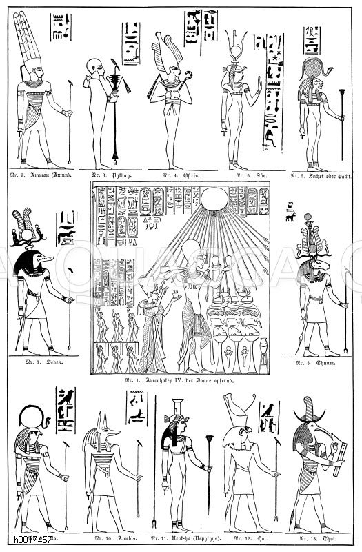 Ägypten: Mythologie: Zeichnung/Illustration/Holzstich – – Egypt: Mythology – Égypte : Mythologie