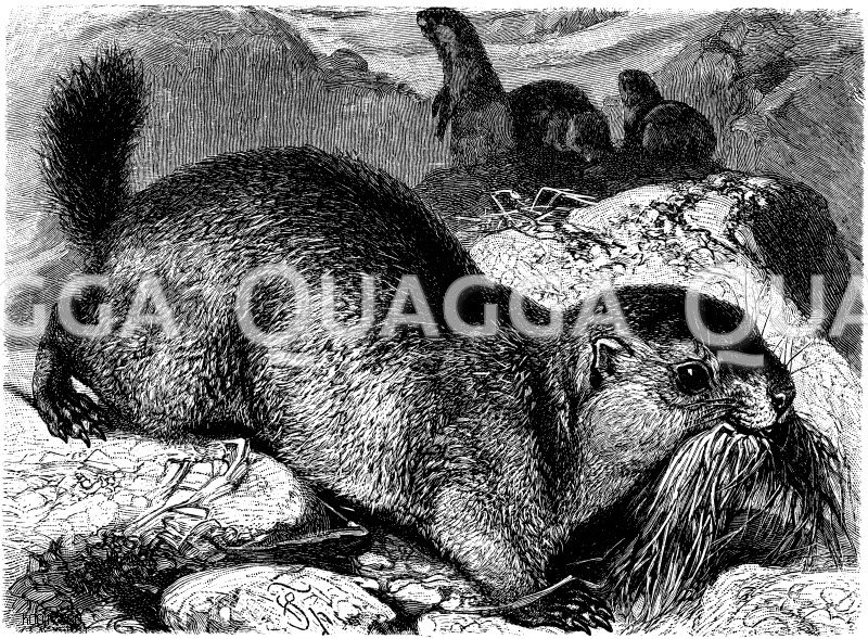 Alpenmurmeltier: Zeichnung/Illustration/Holzstich – Arctomys marmota – –