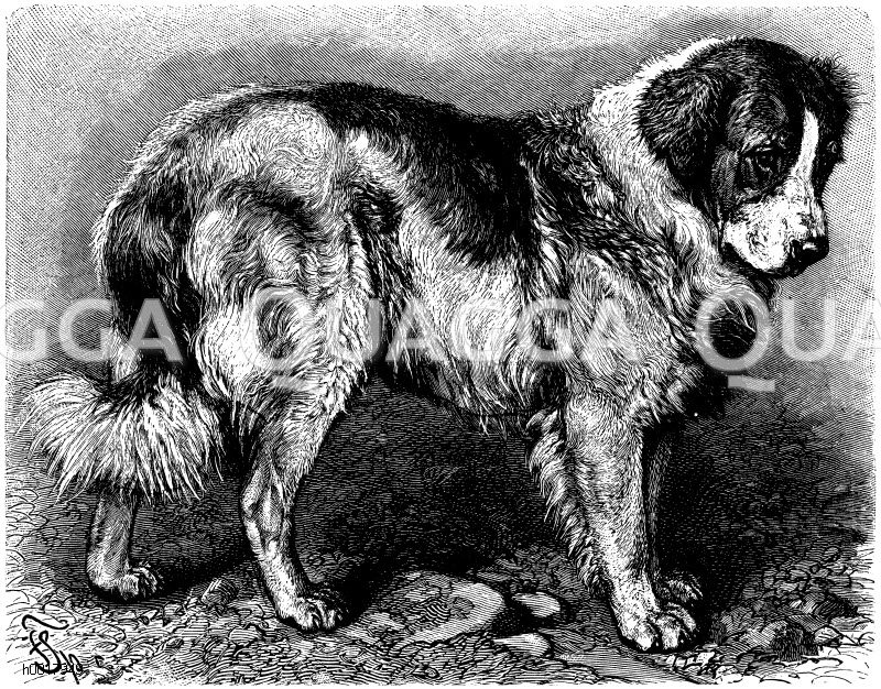 Bernhardiner: Zeichnung/Illustration/Holzstich – – –