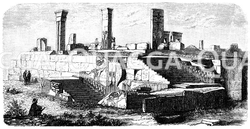 Ruinen vom Palast des Xerres: Zeichnung/Illustration/Holzstich – – Ruins from the palace of Xerres – Ruines du palais des Xerres