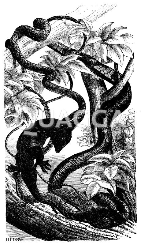 Baumschlange: Zeichnung/Illustration/Holzstich – Dryophis – –