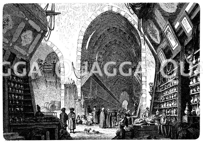 Bazar in Konstantinopel: Zeichnung/Illustration/Holzstich – – Bazar in Constantinople – Bazar à Constantinople