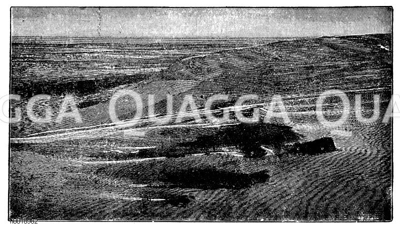 Wanderdüne an der ostpreußischen Küste. Nach einer Fotografie von Gottheil und Sohn in Königsberg: Zeichnung/Illustration/Holzstich – – Wanderdüne on the East Prussian coast. After a photograph of Gottheil and his son in Königsberg – Wanderdüne sur la côte est de la Prusse. Après une photo de Gottheil et de son fils à Königsberg