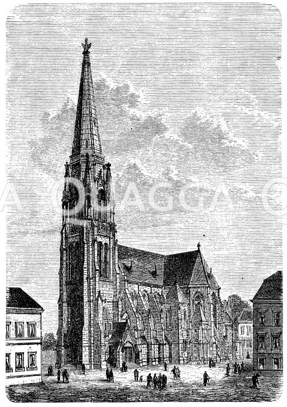 Christuskirche in Bochum: Zeichnung/Illustration/Holzstich – – Christ Church in Bochum – Christ Church à Bochum